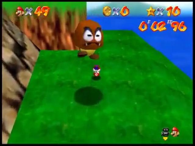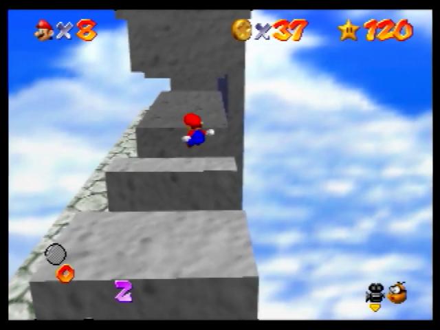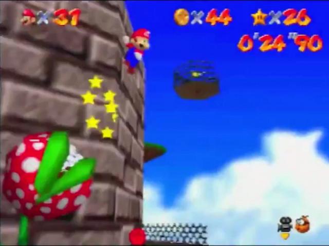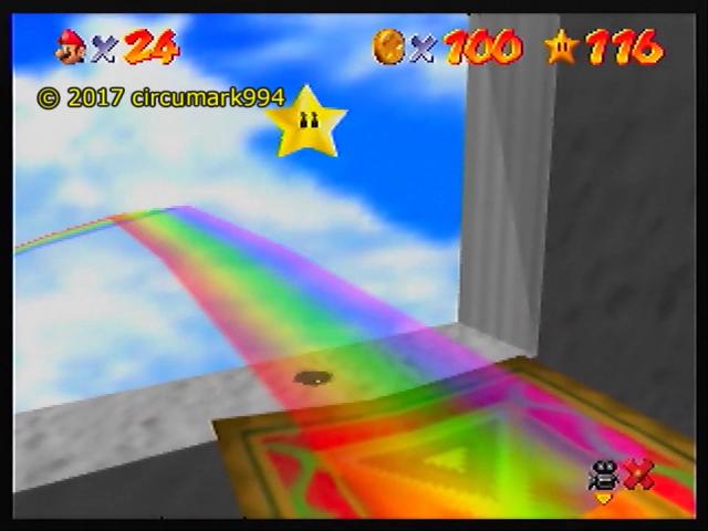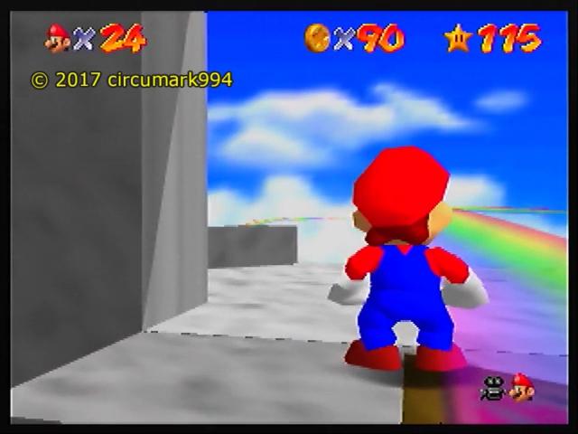 スターを取る直前に、正面視点のままだと1フレームだけほぼ確実に処理落ちしてしまうのですが、C右ボタンを連打するとこれを絶対回避することができます。