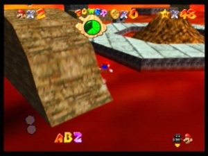 ステージ入場後、スティックを上に倒したままマリオ遠目視点にします。この視点変更により、真上に進むだけで済むようになります。